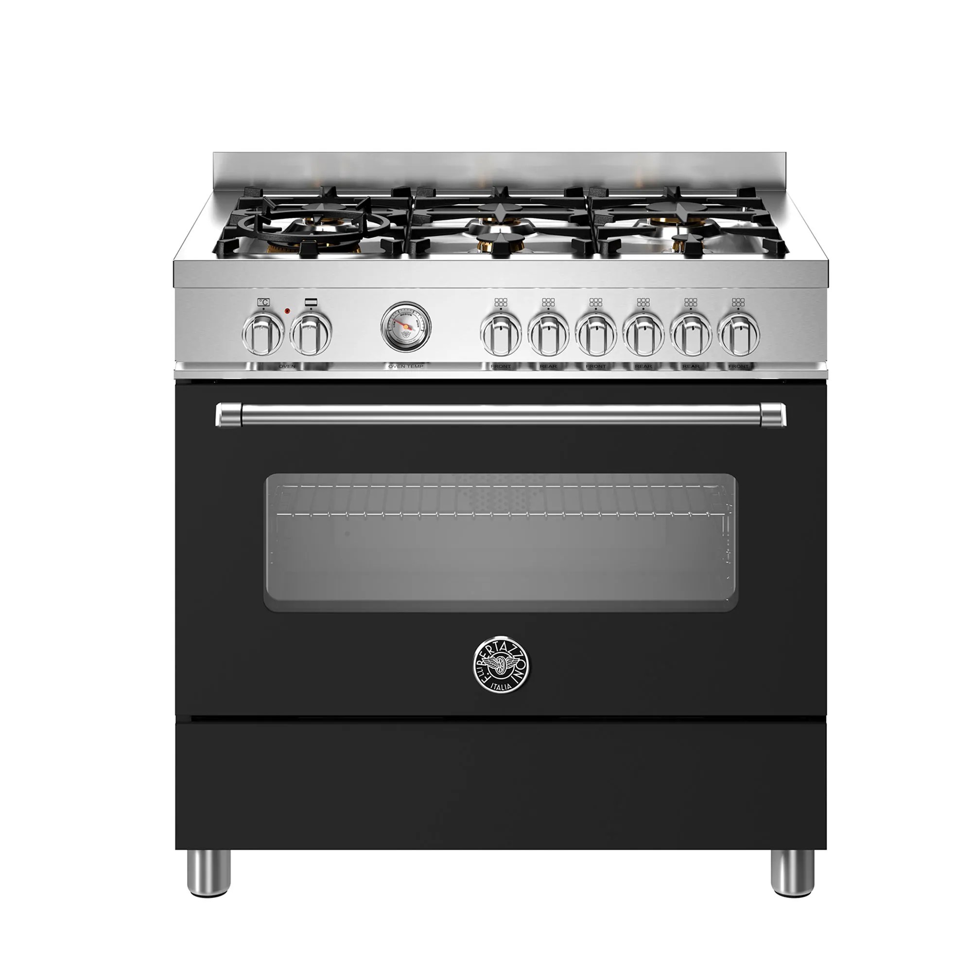Bertazzoni MAS96L1ENET er et førsteklasses gaskomfur med kompromisløs ydeevne, gennemtænkt design og håndværk i alle detaljer. Denne 90 centimeter brede model i elegant matsort finish er en del af Master-serien, der er kendt for sit karakteristiske design