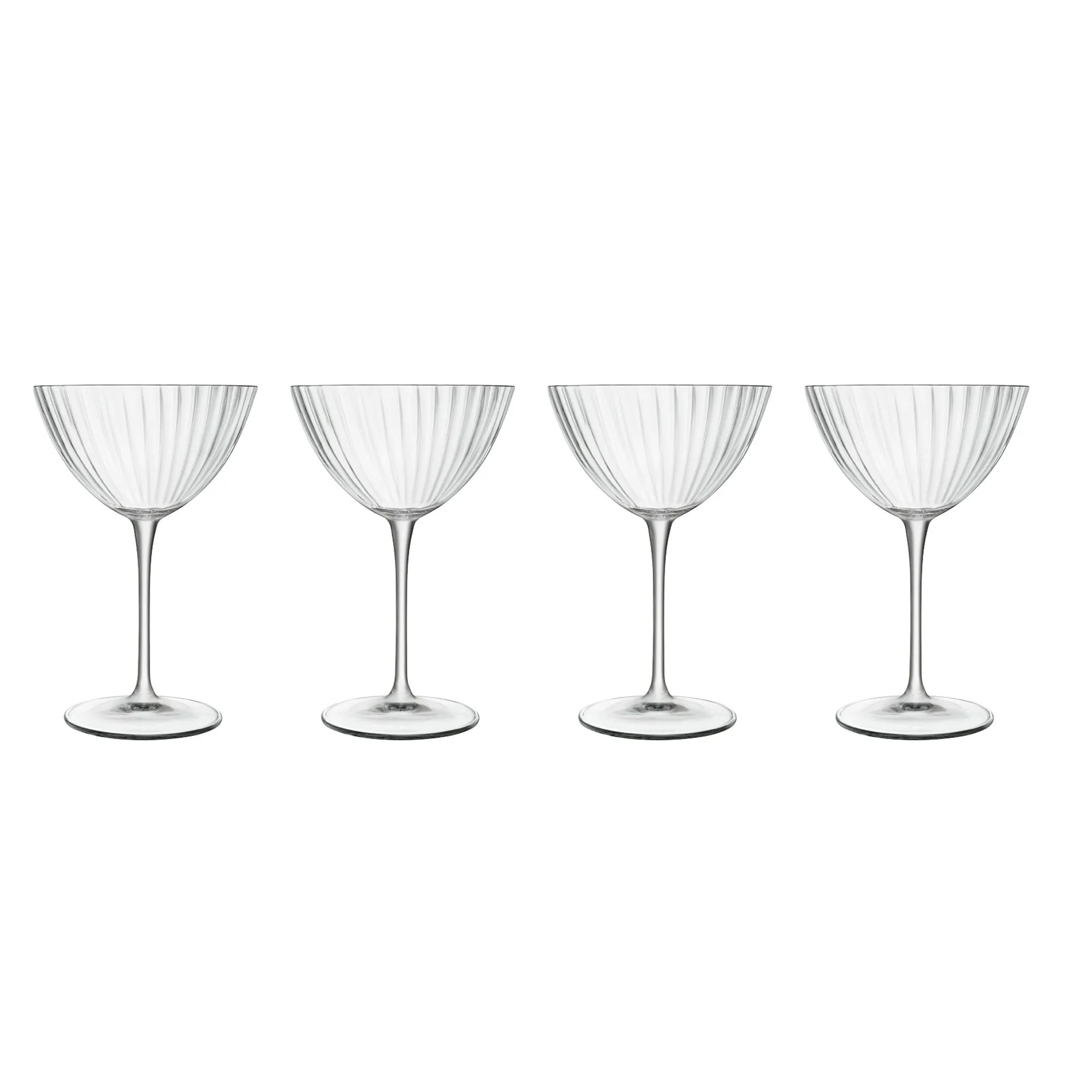 Skab en stemningsfuld ramme om dine drinks med Optica-martiniglasset fra Luigi Bormioli. Det plisserede design bryder lyset og giver et levende udtryk, der gør serveringen både iøjnefaldende og indbydende.Den klassiske form med bred skål og slank stilk er