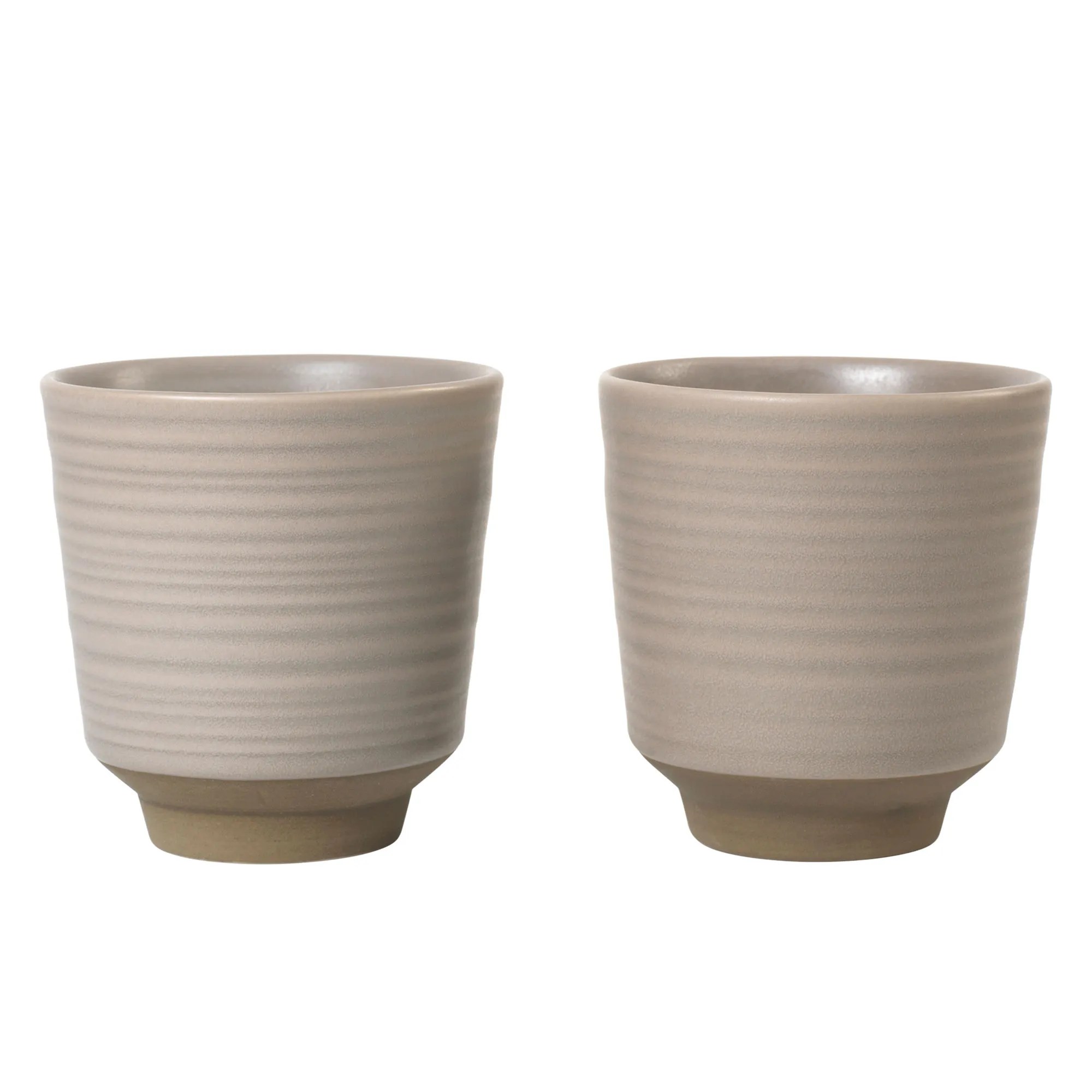 De to Miko-krus i farven warm grey fra Broste Copenhagen forener nordisk enkelhed med et strejf af japansk inspiration. Hvert krus er færdiggjort i hånden, hvilket betyder, at du vil opleve små variationer i form, farve og glasur – hvert sæt er helt uni